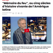 Mémoire du Feu est un spectacle bilingue (français/espagnol), mêlant théâtre, chant et musique. Le spectacle se base sur le texte du grand auteur Eduardo Galeano. C’est une fresque inspirée par l’histoire de l’Amérique latine qui donne la parole aux sans-voix. Le spectacle est composé de faits-divers, de témoignages, d’extraits de discours, de réflexions et de légendes. Ces textes puissants et poétiques sont incarnés par quatre artistes musiciens et comédiens chevronnés. La mise en scène de Patrick Mohr offre un véritable dialogue entre texte, musique et image, dans une forme où chaque discipline a son espace. L’image et la musique prennent en charge ce que les mots ne peuvent exprimer et inversement. Les langues s’entremêlent de manière organique sans avoir besoin de traduction systématique. La musicalité et la présence de l’espagnol se fait en écho, en canon et en simultanéité avec le français pour que l’essentiel demeure toujours compréhensible.