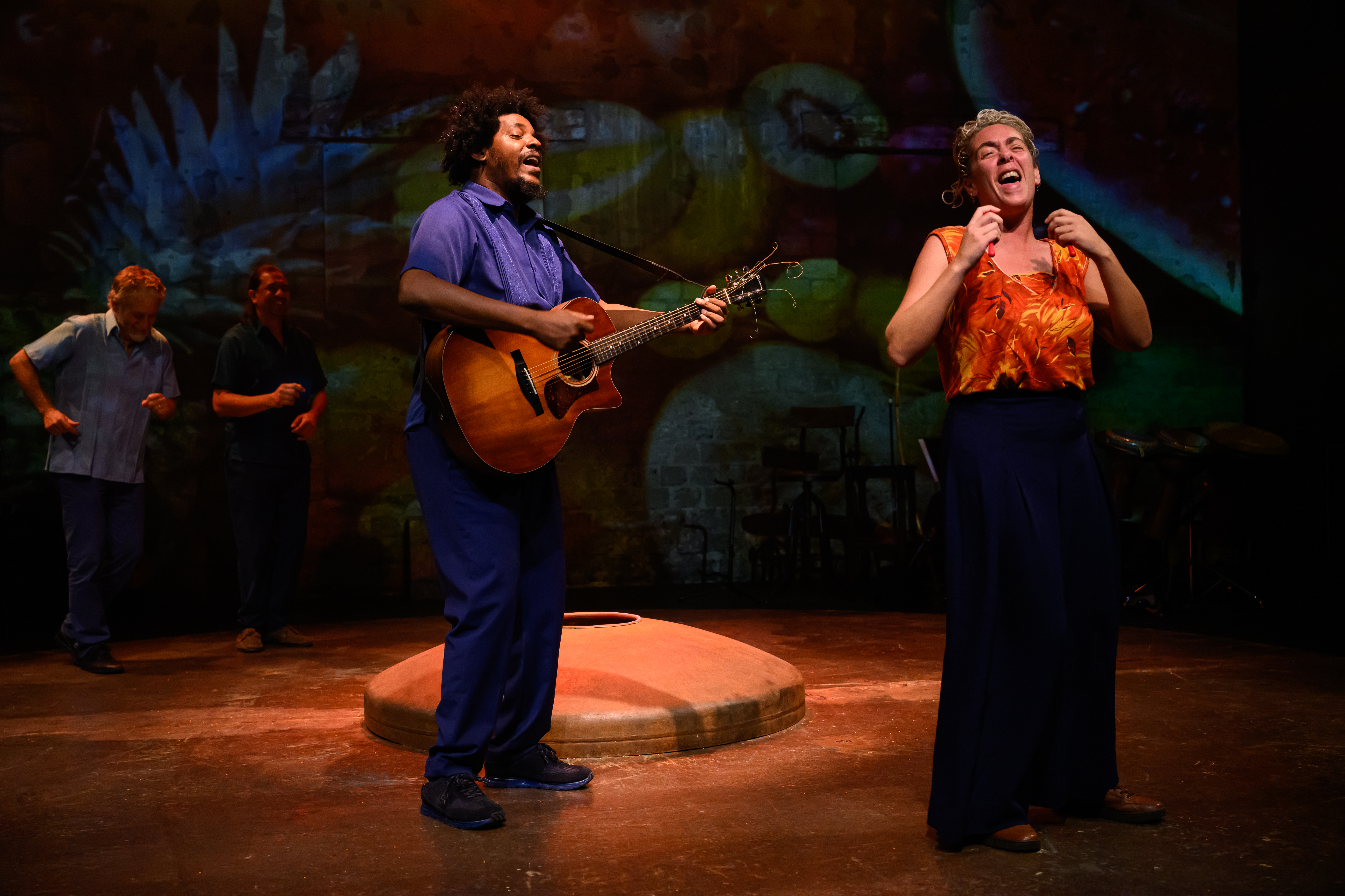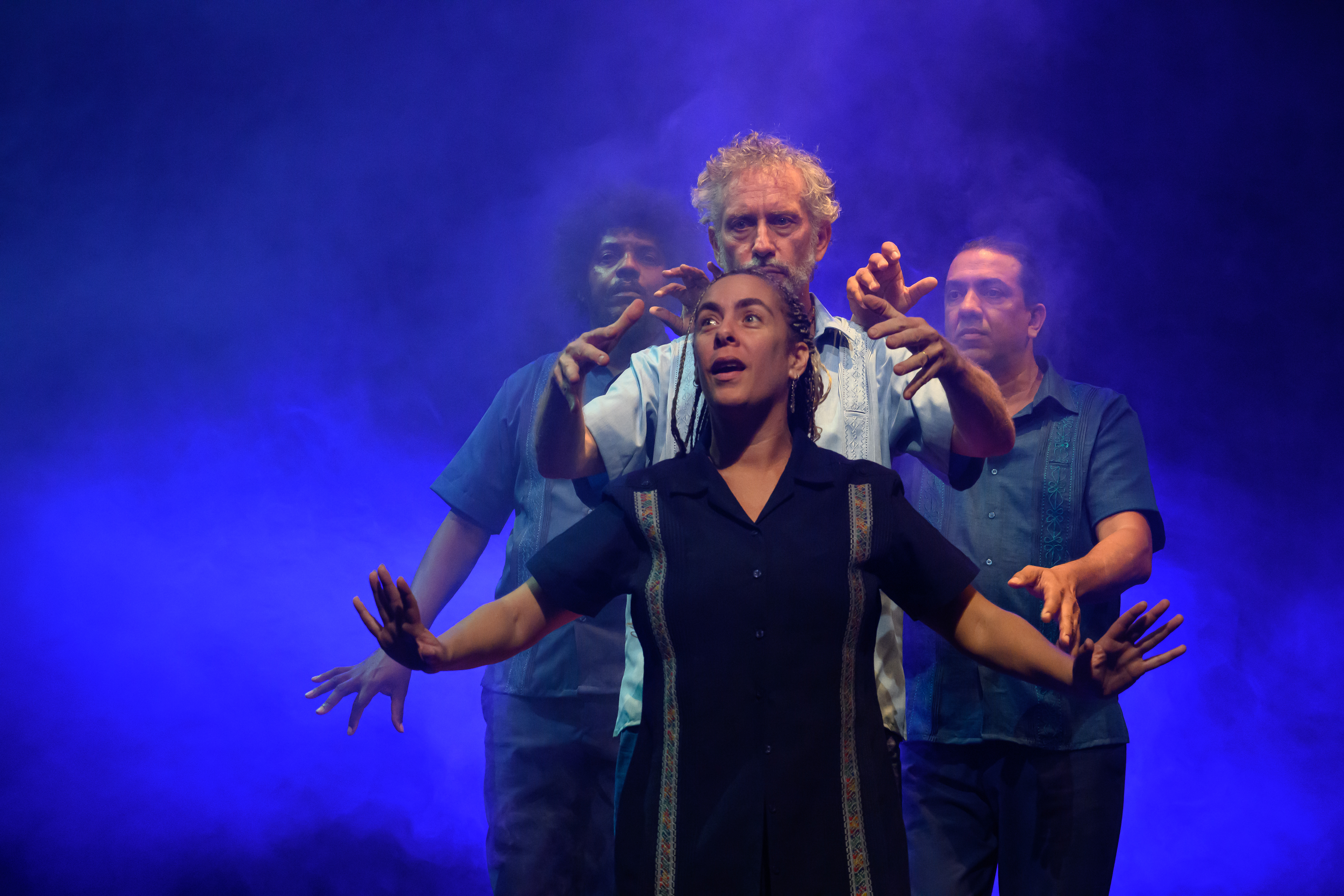 Mémoire du Feu est un spectacle bilingue (français/espagnol), mêlant théâtre, chant et musique. Le spectacle se base sur le texte du grand auteur Eduardo Galeano. C’est une fresque inspirée par l’histoire de l’Amérique latine qui donne la parole aux sans-voix. Le spectacle est composé de faits-divers, de témoignages, d’extraits de discours, de réflexions et de légendes. Ces textes puissants et poétiques sont incarnés par quatre artistes musiciens et comédiens chevronnés. La mise en scène de Patrick Mohr offre un véritable dialogue entre texte, musique et image, dans une forme où chaque discipline a son espace. L’image et la musique prennent en charge ce que les mots ne peuvent exprimer et inversement. Les langues s’entremêlent de manière organique sans avoir besoin de traduction systématique. La musicalité et la présence de l’espagnol se fait en écho, en canon et en simultanéité avec le français pour que l’essentiel demeure toujours compréhensible.